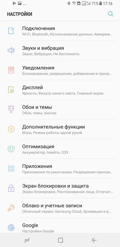 К нынешней модели в Samsung отточили этот дизайн практически до совершенства. Стекло и металл, никакого пластика, экран увеличили до 6,2", но не за счет ширины, а за счет высоты устройства. То есть в Samsung отказались от ставшего классическим формата 16:9, а используют формат 18,5:9. И это на самом деле отличная мысль, потому что, несмотря на увеличенный размер дисплея, смартфон в руке лежит ничуть не хуже, чем тот же Galaxy S7 edge. А увеличение дисплея, конечно, очень благотворно повлияло на удобство работы с устройством.
