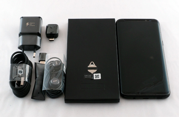 Комплект поставки здесь богатый: смартфон, кабель USB Type-C, сетевой адаптер 5/9 В 1,67/2 А, ключик для вытаскивания вставки под сим-карты, переходник Type-C - microUSB, OTG-переходник для подключения внешних устройств, двухдрайверные стереонаушники AKG со сменными накладками, инструкция.