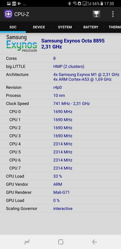 Процессор: Samsung Exynos 8895 Octa, 8 ядер