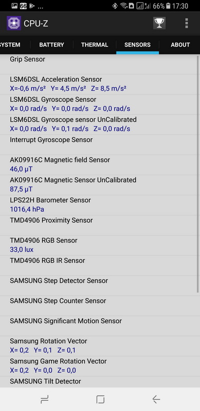 Дополнительно: датчики приближения, освещения, сердечного ритма, магнитного поля, акселерометр, гироскоп, барометр