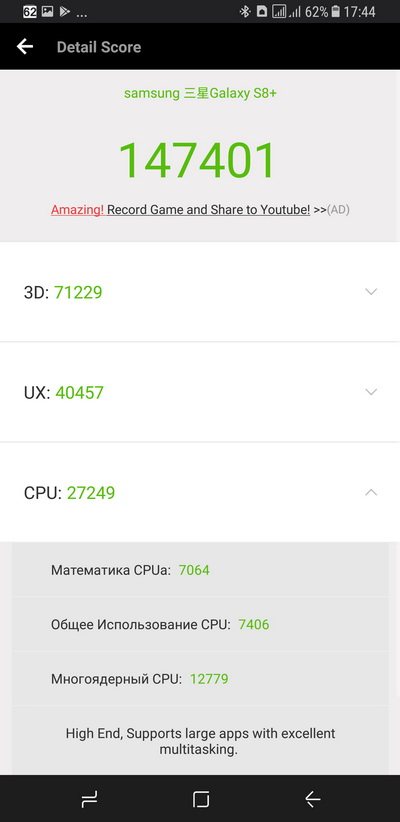 У оригинальных Galaxy S8+ черные полоски по краям проявлялись только в некоторых играх, которые заточены под жесткое соотношение сторон экрана, и там сама игра не давала растягивать изображение - например, в "Танках". А в Asphalt 8 и многих других играх никаких черных полей не появлялось.