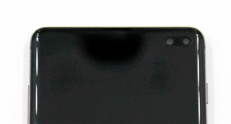 Двойная фронтальная камера расположена в правом углу дисплея.