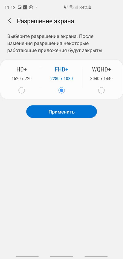 Разрешение экрана можно уменьшать для экономии аккумулятора.