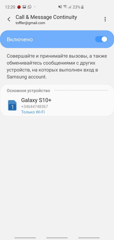 Call&Message Continuity - система, которая позволяет принимать вызовы и сообщения с этого телефона на других устройствах Samsung: например, на планшете.