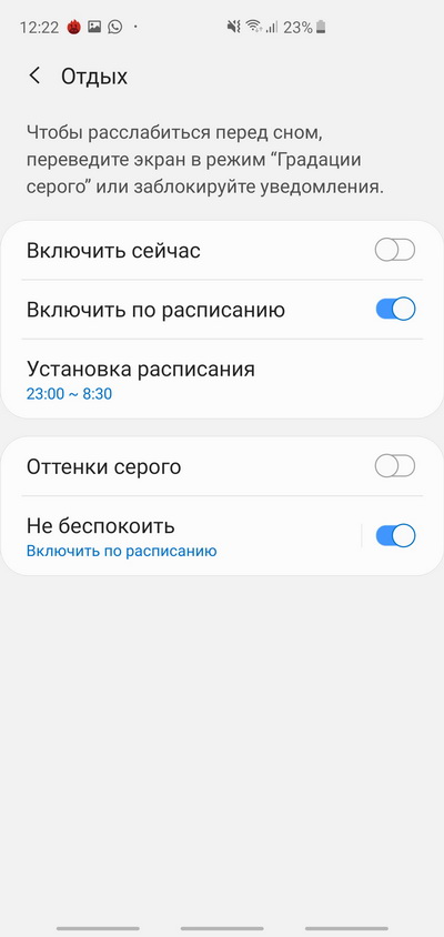 Также есть режим перевода дисплея перед сном в черно-белую гамму.