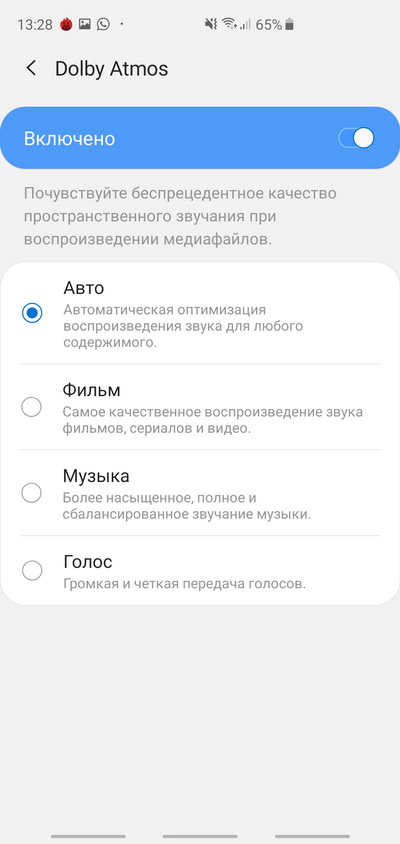 В настройках можно включить систему улучшения звука Dolby Atmos. С ней действительно можно добиться интересных результатов.