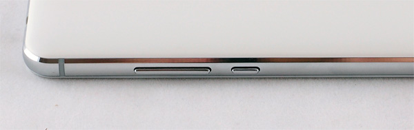 Правый торец - кнопка питания и качелька громкости. Ход клавиш небольшой, но вполне внятный, нажимать удобно.