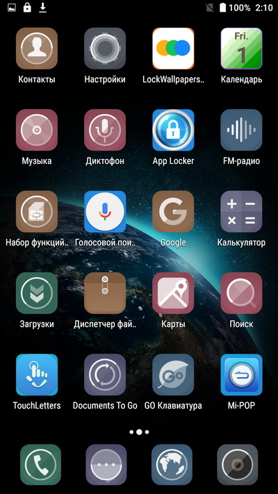 Почти чистый стандартный Android 6.0 с не слишком удачно перерисованными пиктограммами - видимо, для оригинальности. И для еще большей оригинальности нет возможности поменять тему, поэтому если не ставить свою оболочку, то придется довольствоваться этими унылыми картинками с подложками очень странных расцветок.