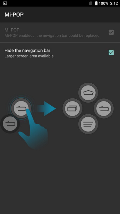 Есть отключаемая навигационная кнопка, которую можно двигать по всему экрану. На черта она нужна при наличии нормальных сенсорных (а не экранных) кнопок - сие есть великая загадка для меня.