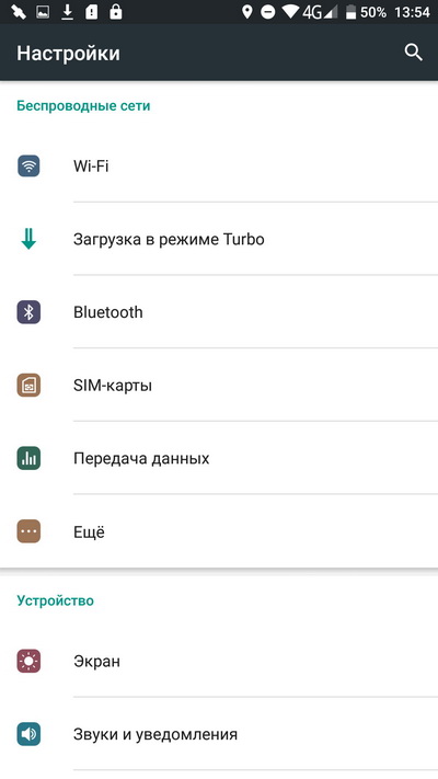 Совершенно стандартные настройки Android 6.0, вообще ничего интересного: ни жестов, ни хоть каких-то дополнительных возможностей.