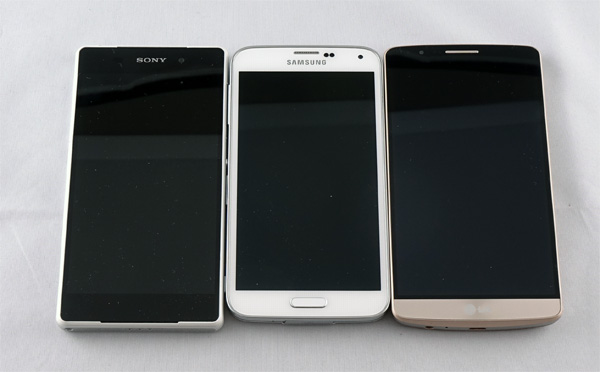 Ну и этот смартфон рядом с Samsung Galaxy S5 и LG G3.
