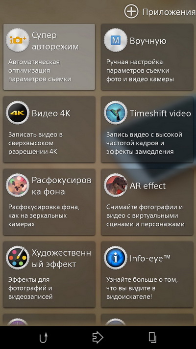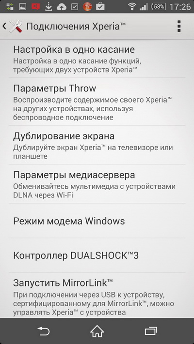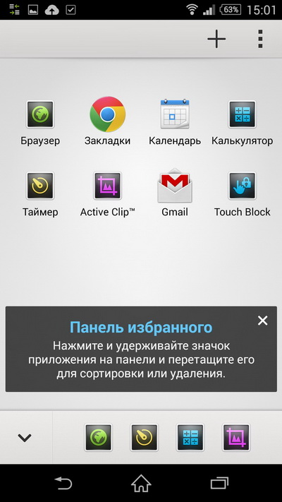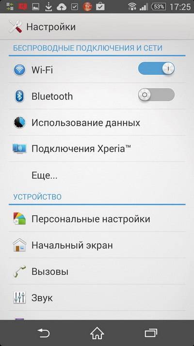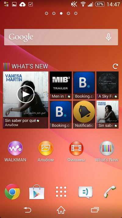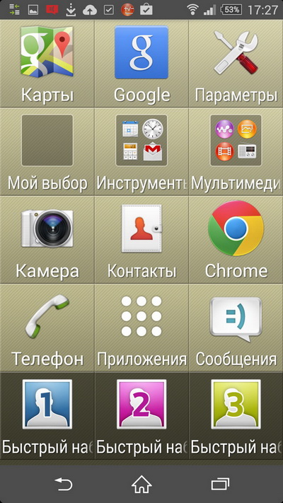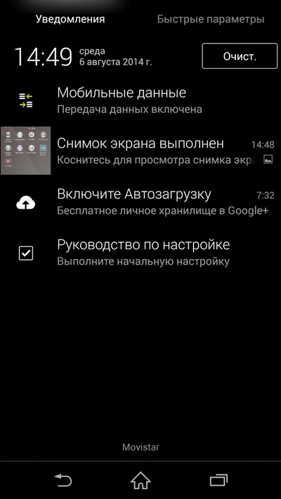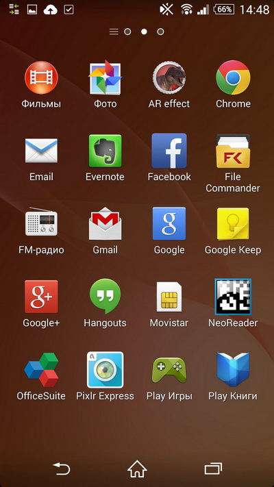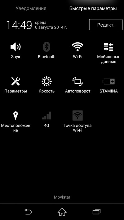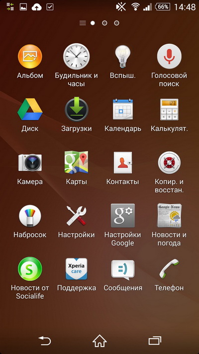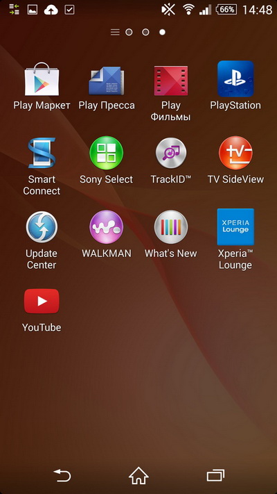 Здесь установлен Android 4.4.2 с фирменной оболочкой и приложениями от Sony.