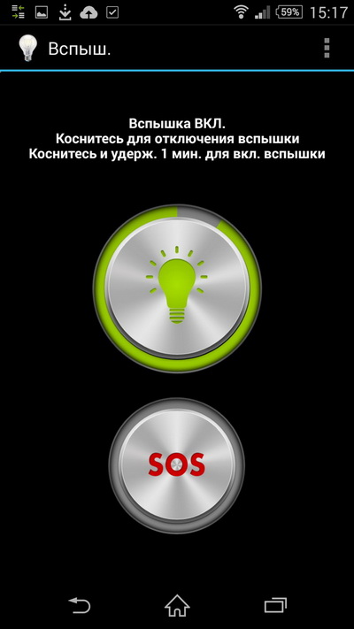 Встроенное приложение для включения вспышки, чтобы смартфон работал фонариком. Есть также режим SOS (мигание вспышки).