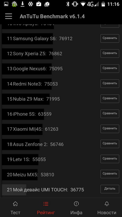 На мой взгляд, за свои деньги этот UMi Touch - вполне приличный вариант. Из компромиссов - не слишком качественное воспроизведение музыки, ну и нагрев на 3D-играх. В остальном - вполне добротный смартфон с реально хорошими характеристиками: солидный дизайн, дисплей явно из другой ценовой категории, 3 Гб памяти, сканер отпечатка, емкая батарея. Если бы еще музыку получше воспроизводил (кстати, частично это исправляется определенными приложениями) - был бы просто реально классный вариант.
