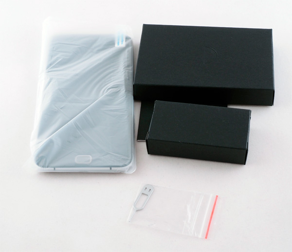 Комплект: смартфон, провод USB-microUSB, адаптер питания 5V-1A, скрепка для слота под сим-карты и карту памяти, брошюрка.