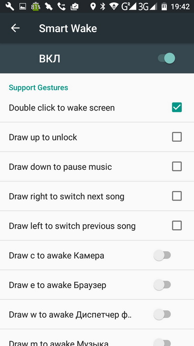 Умное пробуждение - есть включение по двойному тапу по экрану выключенного смартфона, это удобно.