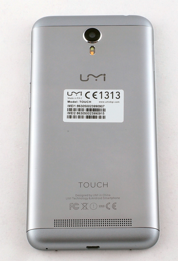 Дизайн у смартфона - очень даже приличный, смотрится телефончик хорошо. Но дизайн нельзя назвать оригинальным: UMi Touch прежде всего напоминает Lenovo Vibe P1. Разве что у UMi Touch срезанные фаски под металл вокруг лицевой части добавляют стильности. Сканер отпечатка пальца, как и у Vibe P1, встроен в кнопку "Домой". Управляющие кнопки "Возврат" и "Меню" сенсорные, маркировки не имеют, имеют подсветку в виде простой точки.