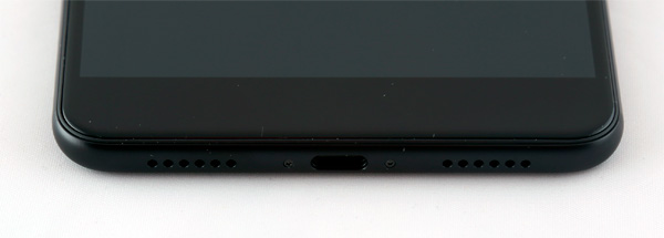 Нижний торец - отверстия, под которыми скрываются динамик и разговорный микрофон, в центре - порт USB-С.
