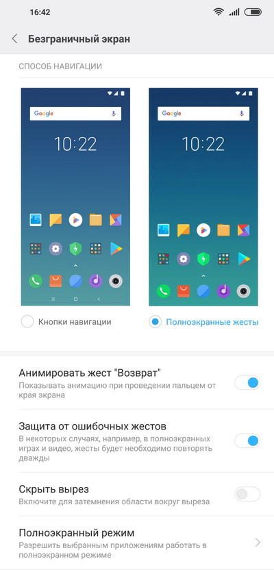 Традиционная для смартфонов Xiaomi возможность вместо экранных кнопок (настраиваемых) задать управление жестами. Это настраивается в пункте меню "Безграничный экран".
