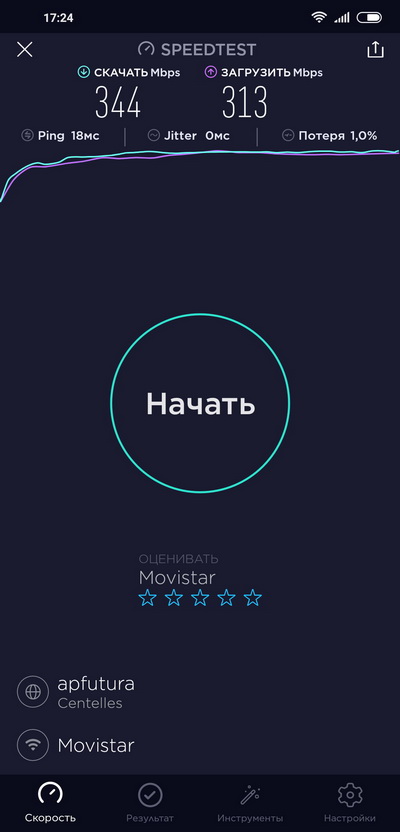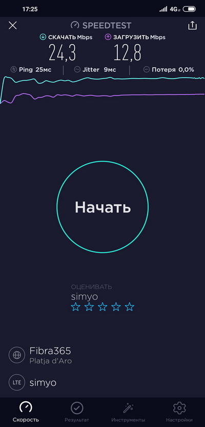 Тест скорости мобильного Интернета - на ожидаемом уровне.