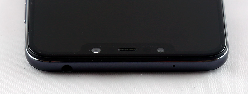 Корпус сделан из пластика, экран покрыт стеклом 2,5D. В верхней "челке" расположены динамик, селфи-камера и инфракрасная камера распознавания лица.