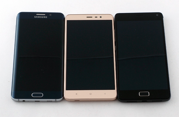 Ну и вот Redmi Note 3 в окружении Samsung Galaxy S6 edge+ и Lenovo Vibe P1.
