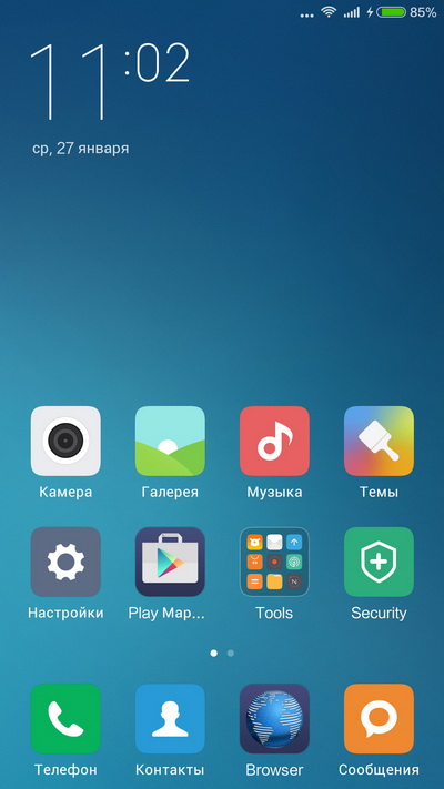 Здесь установлены Android 5.0.1 и традиционная для смартфонов Xiaomi оболочка MIUI (V7.0). Официальная международная версия, как я понял, еще не вышла, а эту сборку, судя по всему, допиливали в магазине для международного рынка. Кстати, сборка получилась более или менее пристойная, я у Xiaomi встречал достаточно дикие сборки в устройствах, приходящих из магазина.