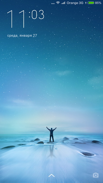 Экран блокировки, откуда можно перейти в приложение "Камера".