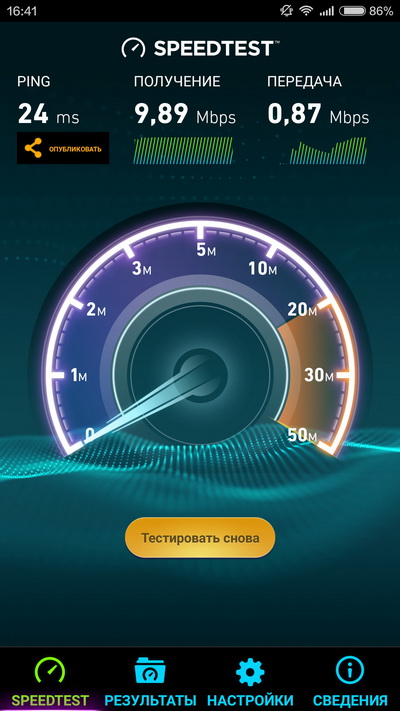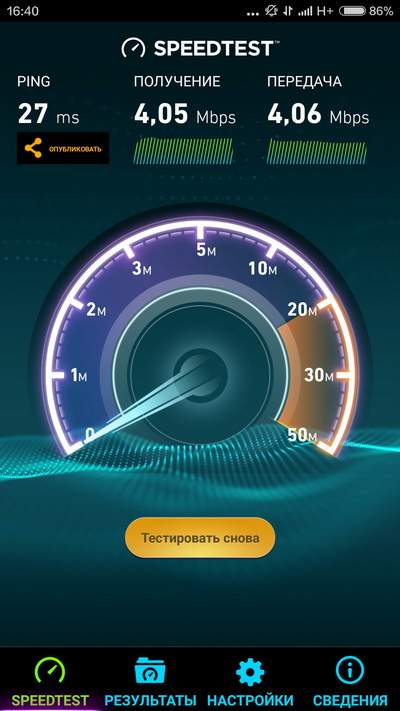 Тестирование мобильного Интернета - показатели в пределах нормы.