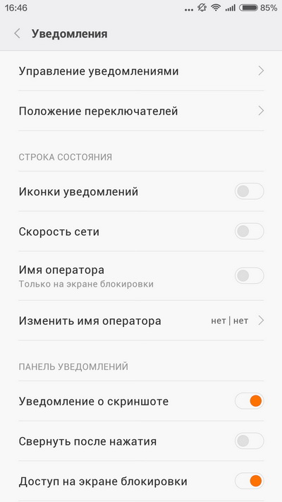 Настройка шторки есть. Настройки - уведомления - положение пепеключателей