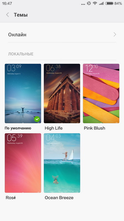Смена тем оформления. Есть пять локальных тем, а вот онлайновые темы - на китайском, так что вряд ли пригодятся.