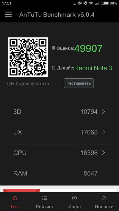Ну и общий индекс по PCMark. Что интересно, у Motorola Moto X Play, который дороже в два раза, индекс 4042.