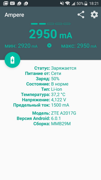А что за програмка показивает инфу при заряде? (Там еще Ampere написано 😄 Родная от ZTE?