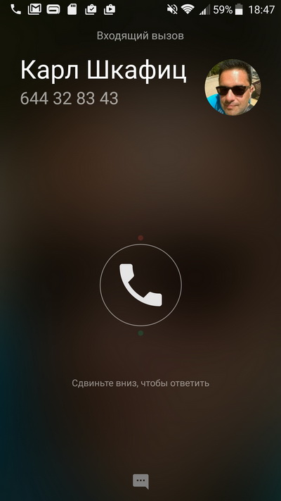 Входящий звонок. Крупно изображение не показывают, только небольшой кружок.