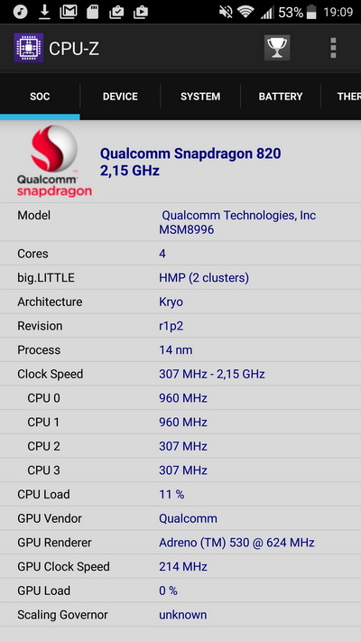 Процессор: Qualcomm Snapdragon 820, 4-ядерный