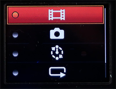 Отличие дисплея камеры от внешнего дисплея в плане настроек только в том, что в дисплее камеры помещаются 4 пиктограммы, а на внешнем дисплее - 6.