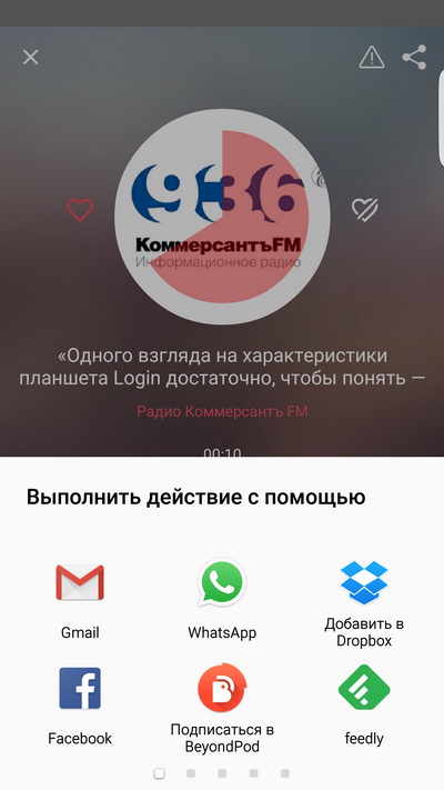 Ну и пиктограмма справа сверху в плеере - поделиться данной передачей самыми разнообразными способами.