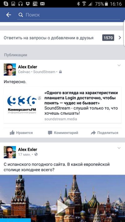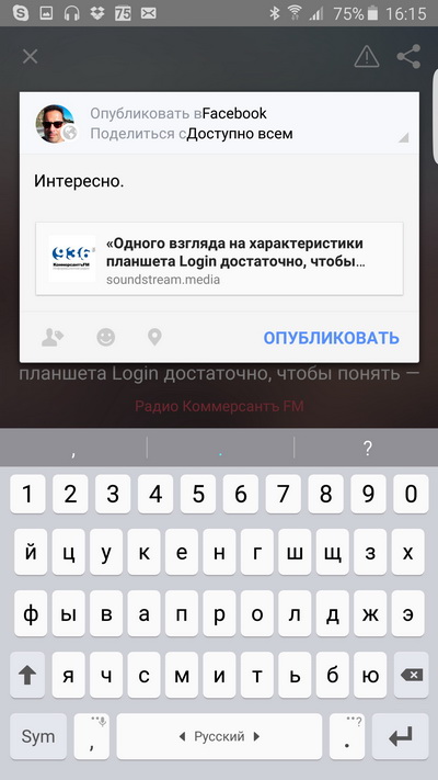 Вот, например, публикация в Facebook прослушиваемой передачи.
