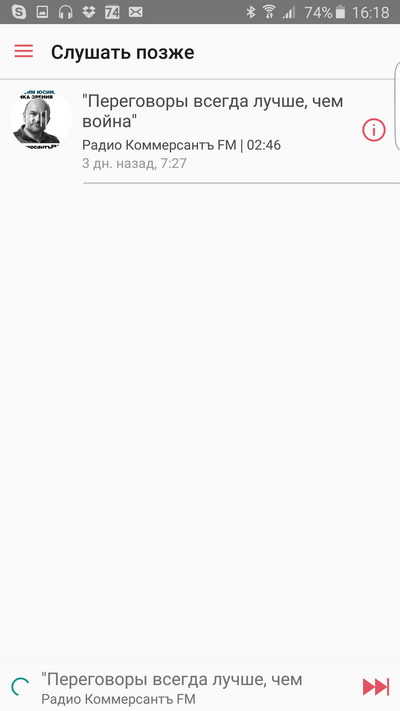 Офлайн - прослушивание скачанных на смартфон передач. (Например, в ситуациях, когда или нет доступа в Интернет или доступ очень медленный.)