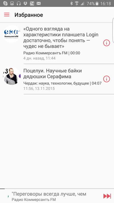 Сейчас вроде бы все поправили: сервисом можно пользоваться и в офлайновом, и в онлайновом режимах. Впрочем, мне офлановый режим нравится больше: я обычно закачиваю заранее те передачи, которые хочу послушать на прогулке, и потом их воспроизвожу.