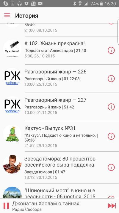 История - история прослушивания вами передач. Может пригодиться в случаях, когда вы не успели дослушать какие-то передачи.