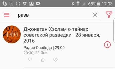 В этом случае когда вы находитесь в зоне доступа в Интернет по Wi-Fi - просто выбираете нужные передачи и заказываете их скачивание. Потом, когда понадобится их прослушать, передачи можно будет воспроизводить со смартфона без всякого доступа в Интернет.
