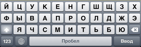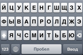 Русская клавиатура iPhone в портретном и альбомном режимах
