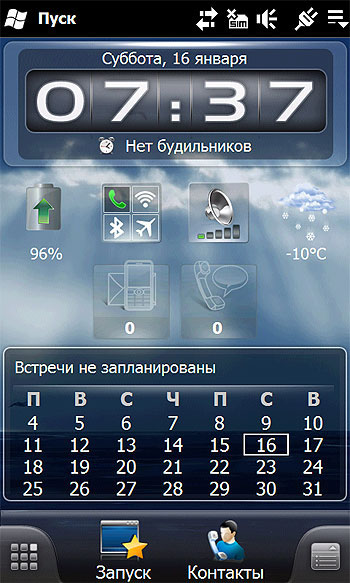 В HD2, впрочем, оболочка Sense и приложения от HTC также очень неплохо выглядят и уже полностью заточены под управление пальцами, однако такой красоты дизайна нет даже там. А уж когда заходишь в какую-то очень полезную, но старую программу под Windows Mobile, написанную тогда, когда об управлении пальцами никто не думал, тогда сразу тяжело вздыхаешь.