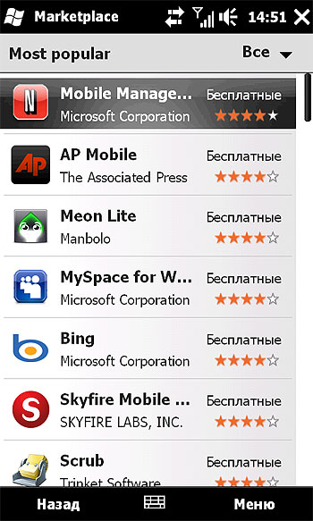Кроме того, для Windows Mobile также существует официальный магазин - Windows Marketplace. Вы можете скачивать (покупать) приложения только оттуда.