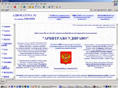 Сайт "Арбитражсудправо" . Вроде, солидная контора - Адвокатское бюро, а web-сервер жутко похож на "обычную кошмарную домашнюю страничку". Причем раньше он был еще хуже. Они недавно хоть свой ужасный логотип поменяли на обычный текст