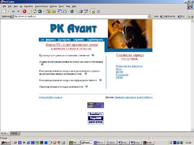 Сайт фирмы "РК Аудит". Вроде, ничего особенного, но все сделано просто, стильно и не кричаще. Страница быстро загружается и имеет вполне удобную навигацию. Яркий пример простого, но эффективного дизайна сайта фирмы