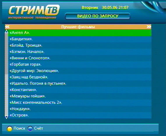 Это еще более интересная услуга. Вам предлагается список фильмов (сейчас пока в списке только одна рубрика - "Лучшие фильмы", и список совсем небольшой).
