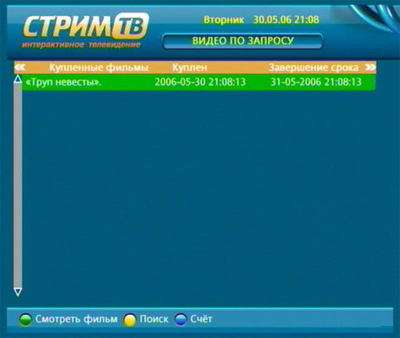 Качество демонстрируемых фильмов вполне хорошее. Вот, например, скриншот с демонстрируемого по данной услуге фильма "Труп невесты".