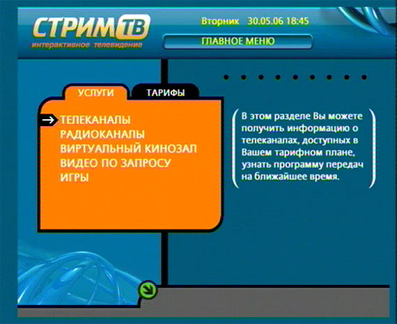 Основное меню "Стрим ТВ"